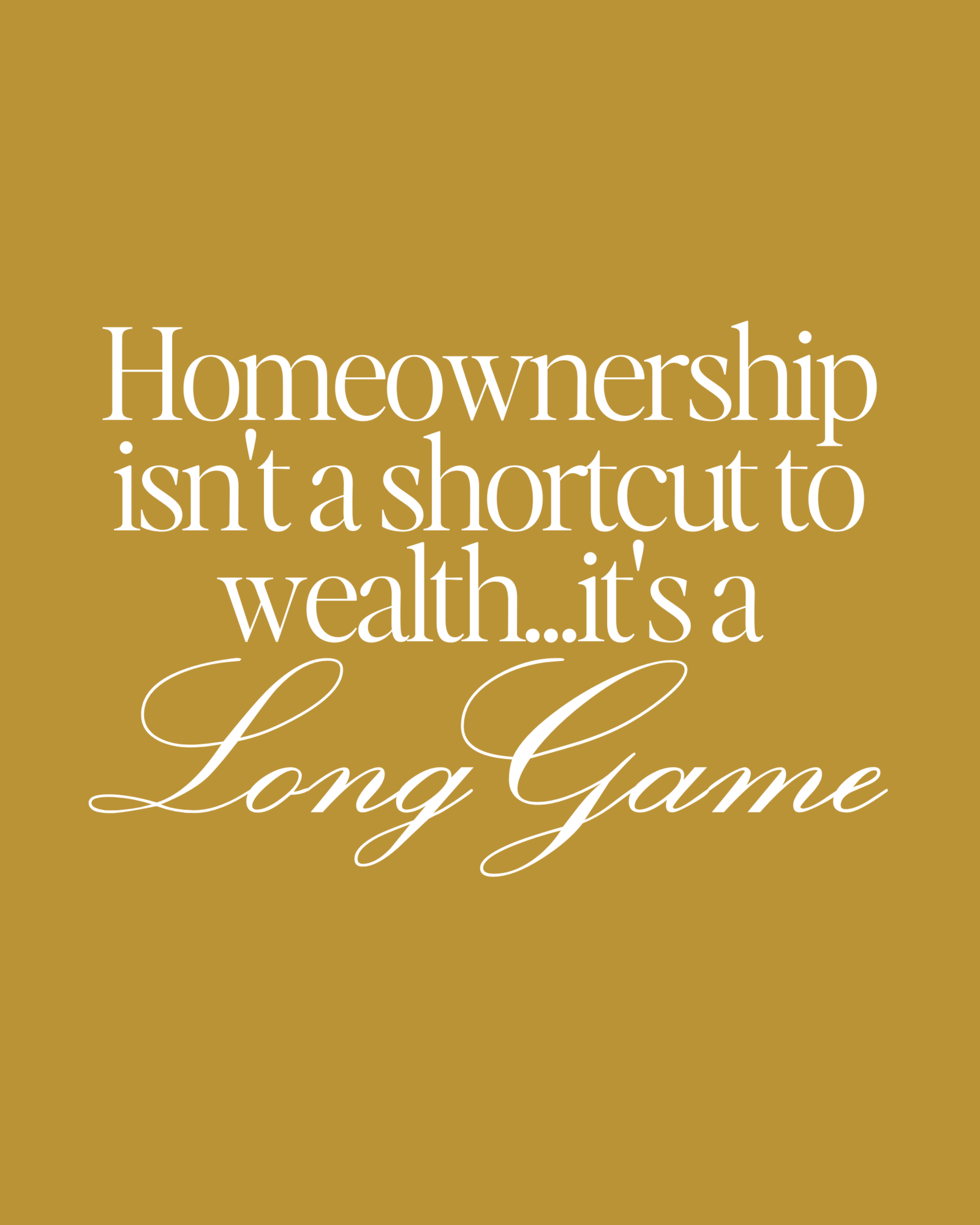 But homeownership isn't a short game. It's not a shortcut to wealth. It's a long game.