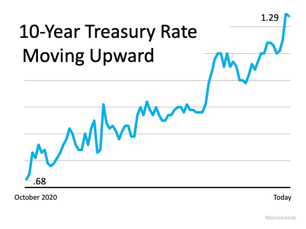 There’s no denying the close relationship between the two. Over the last five decades, there’s been an average 1.7-point spread between these two rates. It’s this long-term relationship that has some forecasters projecting an increase in mortgage rates as we move throughout the year. This is based on the recent surge in the 10-year treasury rate shown here: