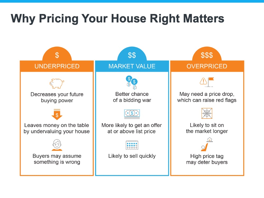 To get a look into the potential downsides of over- or underpricing your house and the perks that come with pricing it at market value, see the chart below: